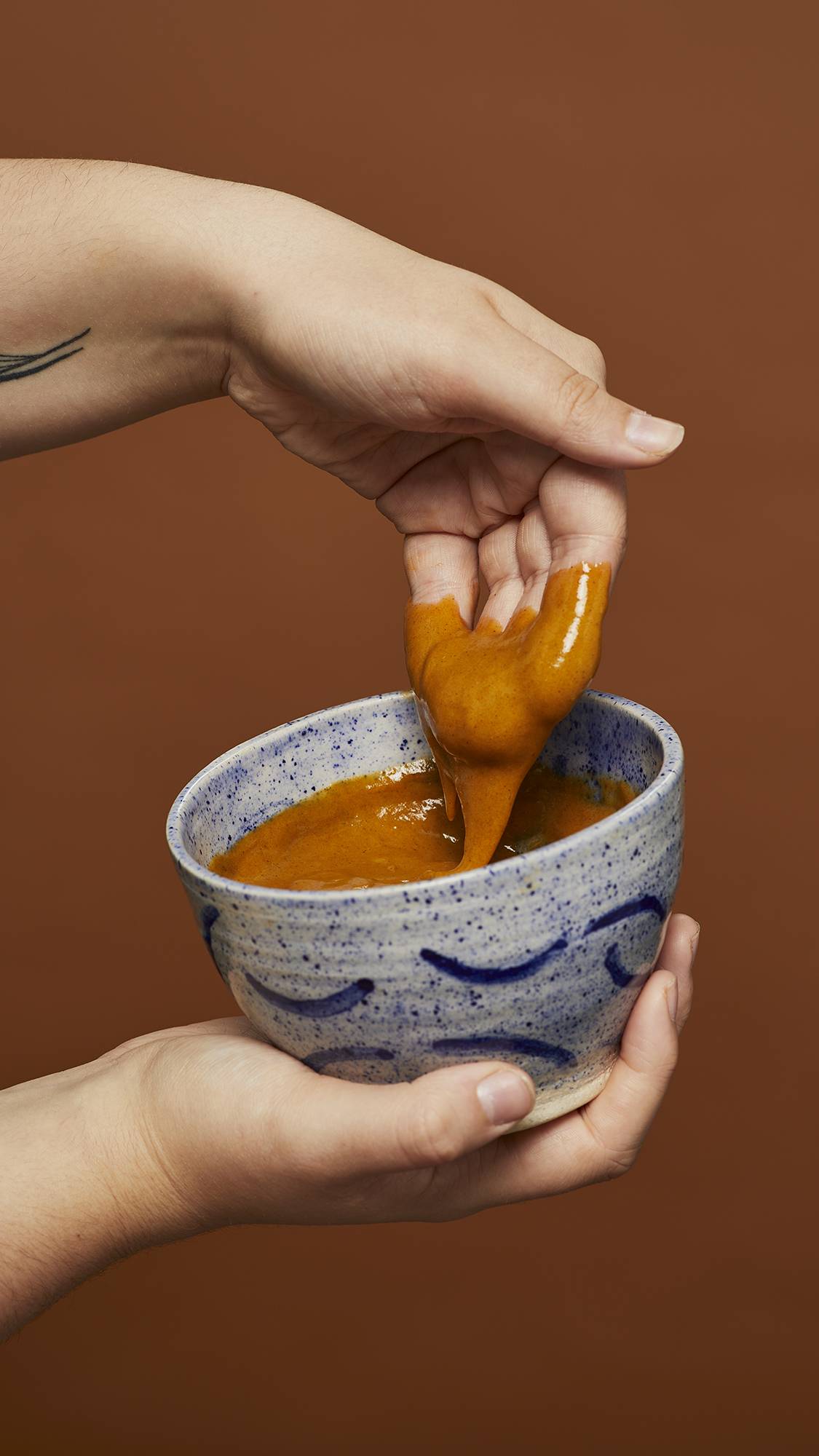 2. Slowly add several ounces of boiling-hot water to the solid treatment and stir gently using the wooden stick. Take your time, adding water as needed, and allowing the product to thicken until you’re left with an empty stick and a rich, creamy treatment. This should take around five minutes.